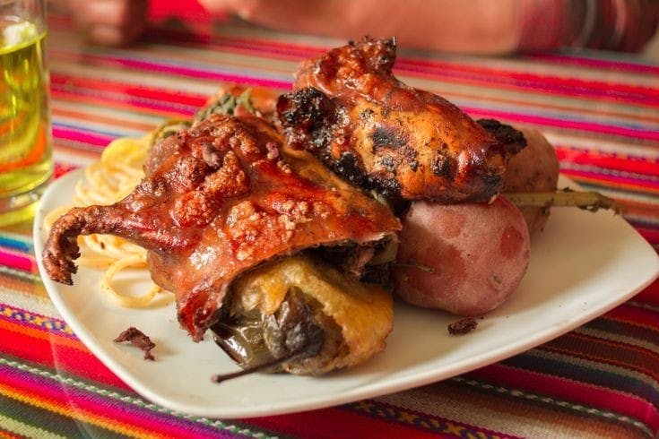 El cuy al horno es un plato tradicional peruano que destaca por su sabor y su rica historia. Este roedor, conocido como cuy, es una parte esencial de la gastronomía andina, especialmente en la región de Cusco. Para prepararlo, el cuy se limpia y se adereza con una mezcla de ajo, comino, ají panca y sal, y luego se hornea hasta que su piel queda dorada y crujiente.Este manjar se sirve comúnmente acompañado de papas y ensalada, ofreciendo una experiencia culinaria única que resalta la riqueza de la cocina peruana. El cuy al horno no solo es delicioso, sino también nutritivo, ya que proporciona proteínas y grasas saludables. Si visitas Perú, no puedes dejar de probar este icónico platillo que representa una parte importante de la cultura culinaria del país.